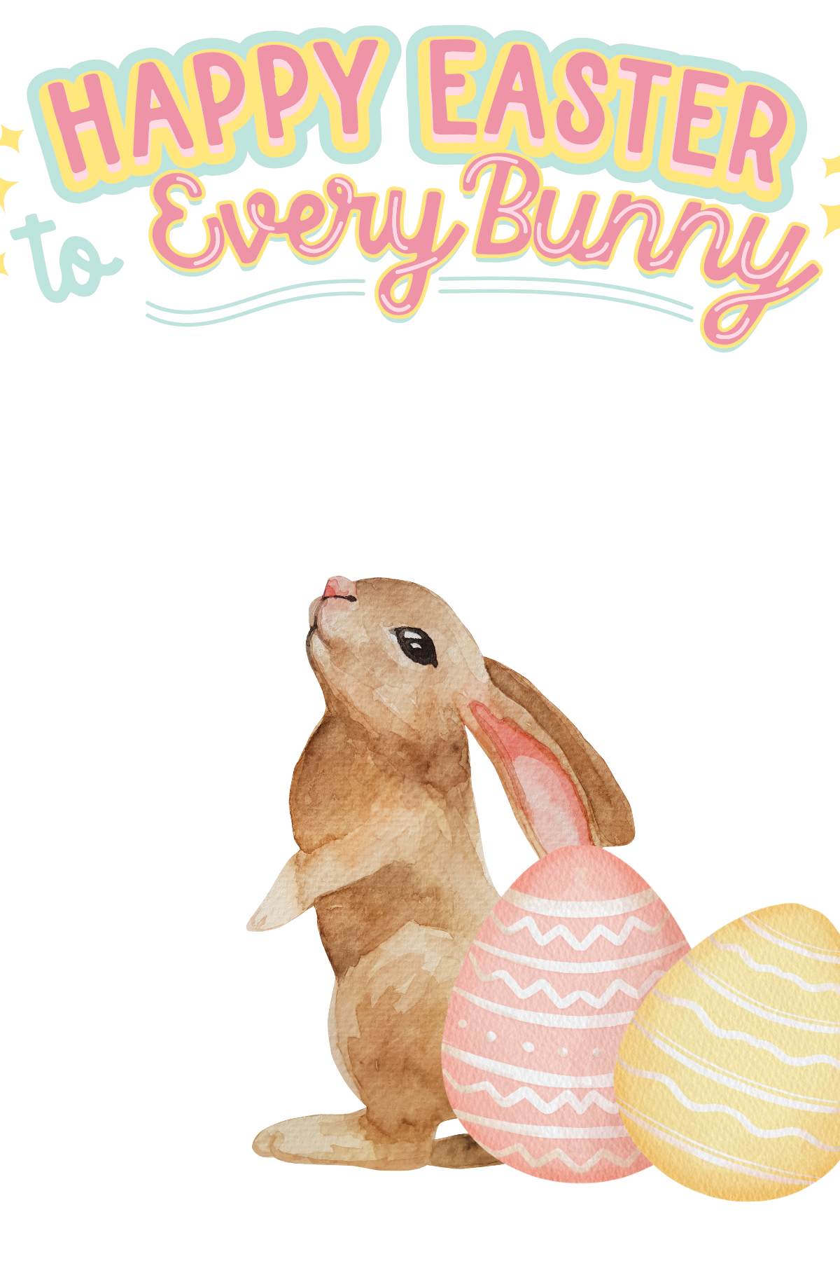 A cheerful Easter card featuring an adorable bunny surrounded by brightly colored eggs — perfect for spreading springtime joy and festive wishes.
