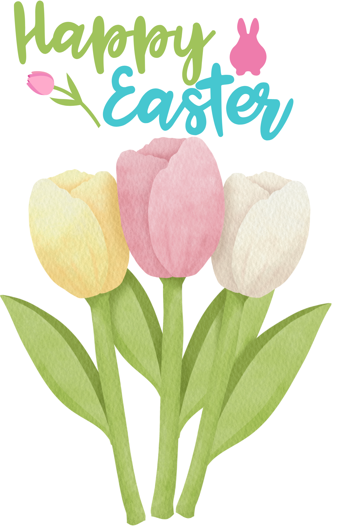 A bright and elegant Easter card featuring blooming tulips in soft spring colors — perfect for sharing warm wishes and the beauty of the season.