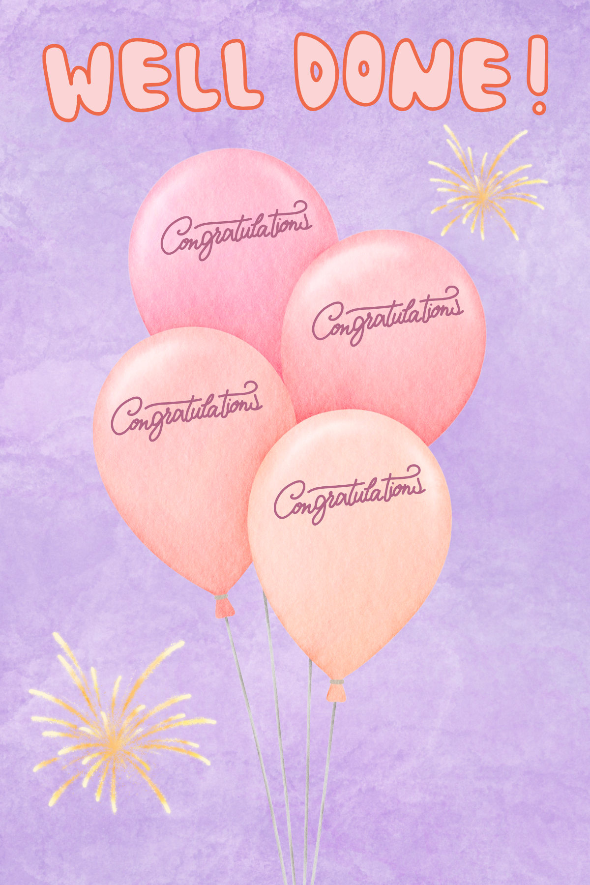 Lift their spirits and celebrate success with this vibrant well done card featuring colourful balloons — a joyful and encouraging way for tutors, teachers, or staff to recognise the achievements of students and colleagues.