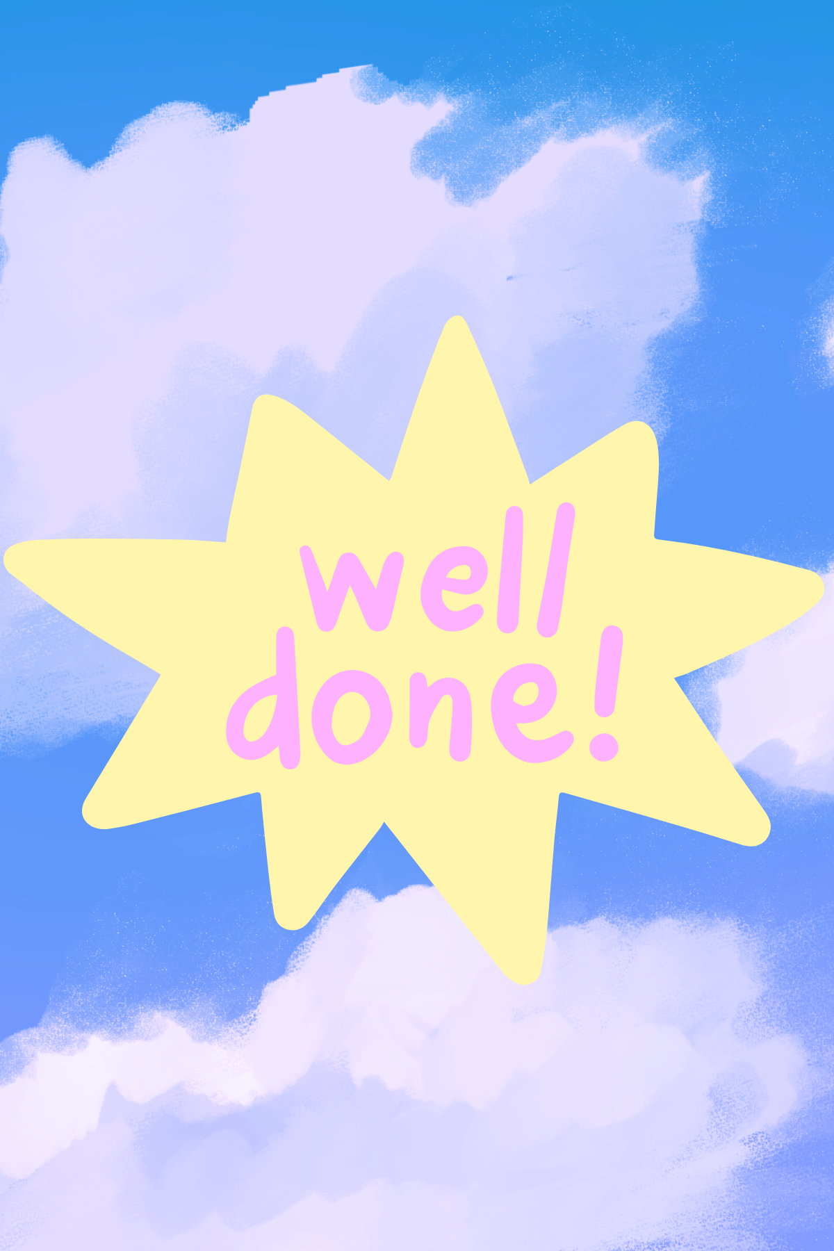 A calm and uplifting sky-themed design filled with soft clouds and sunshine — the perfect “Great job, well done!” card to celebrate an achievements with positivity and pride.